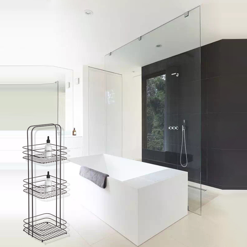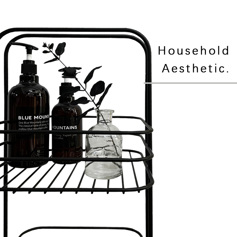 Iron Art Set Shelf Ground Floor Type Multilayer Grid Containing shelf Black Nordic Bathrooms Kitchen Net Basket Plus High Shelf