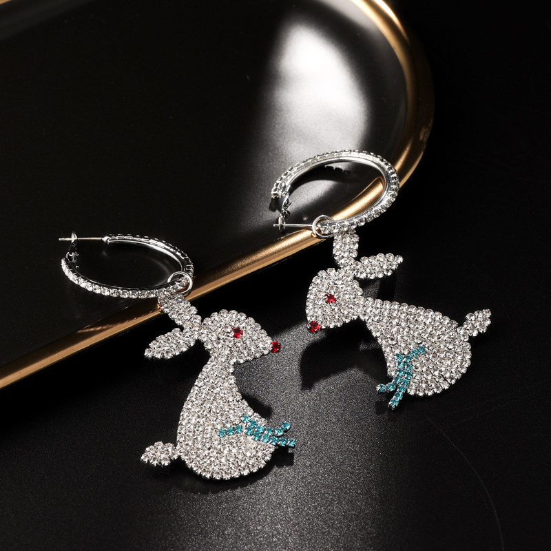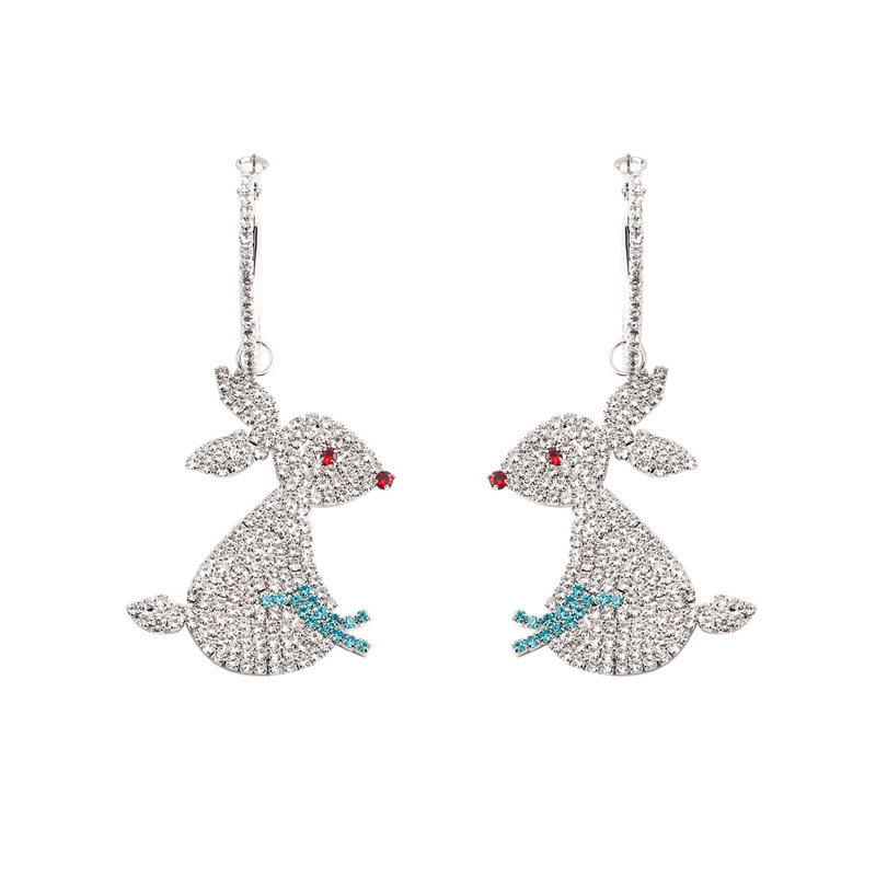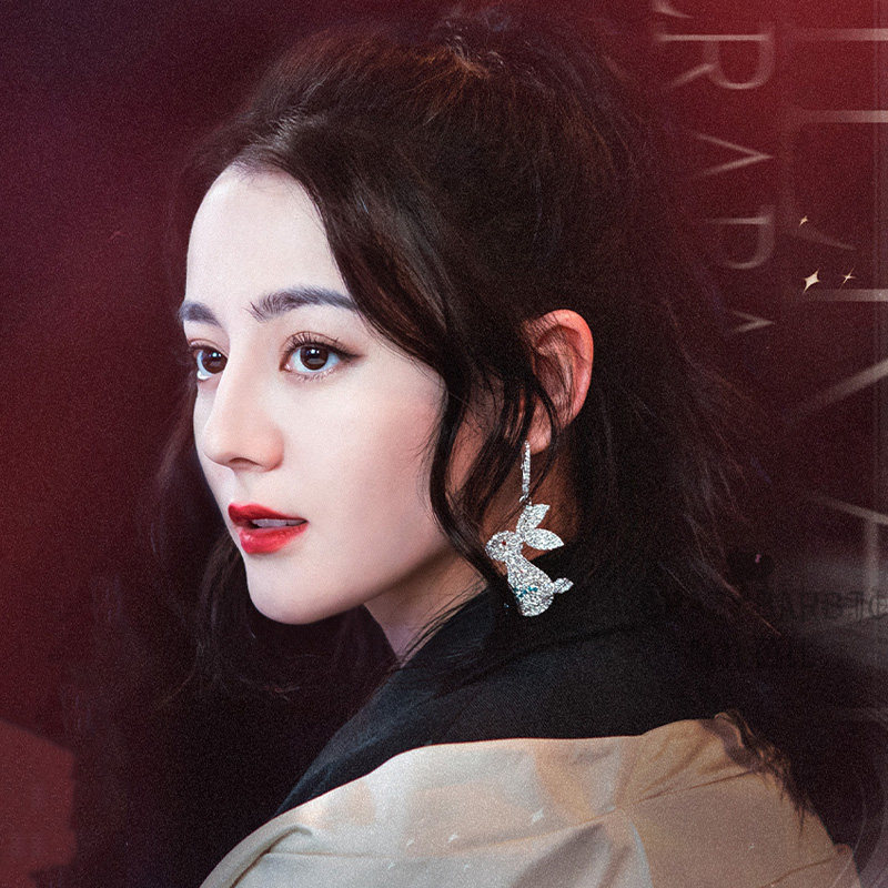 Dilireba with the same earrings rabbit earrings female high-end ear clips without ear holes full drill earrings new 2022