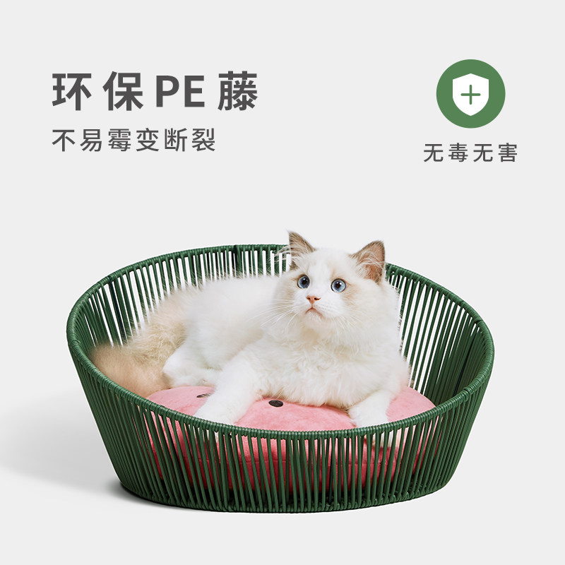 (Luhan endorsement) Uncaught watermelon cat cool nest detachable cleaning rattan nest rattan general cat sleeping supplies