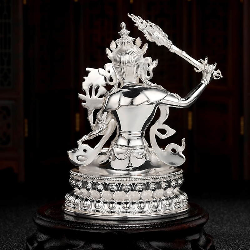 Pure Silver 4 Inch Buddha Statue of Yellow Finance and God Tibetan Wang Wenshu BodhisattBodhisattva s999 Pure silver Buddha statue of the hidden stay-at-home pendulum