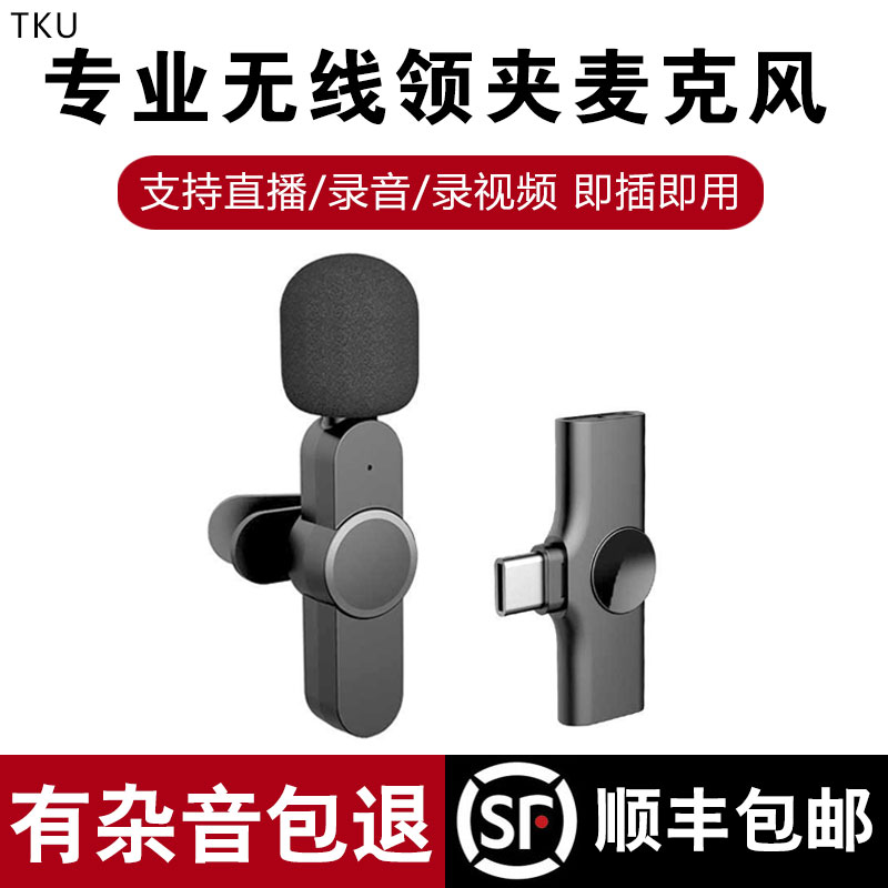 Wireless Microphone Collar Clip Type One Drag Two Noise Reduction Mobile Phone Live Special Eating Sow Voice-controlled Microphone Receiver Small Bee Pat Movie collection Mcvlog clip collar application Apple Huawei interview