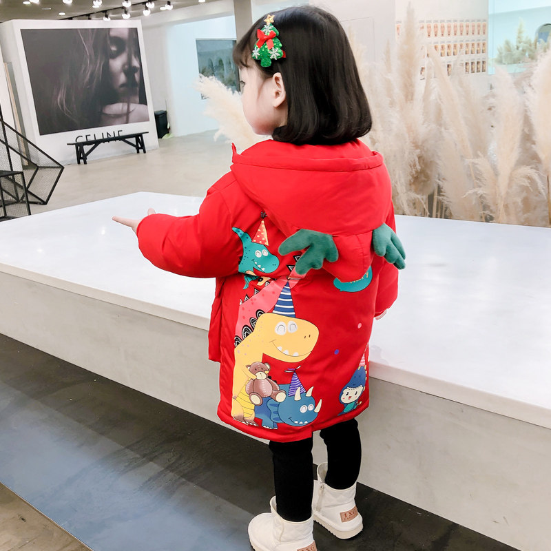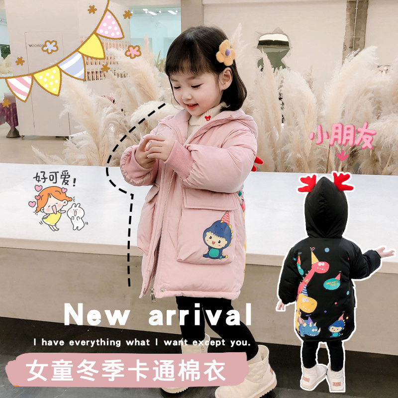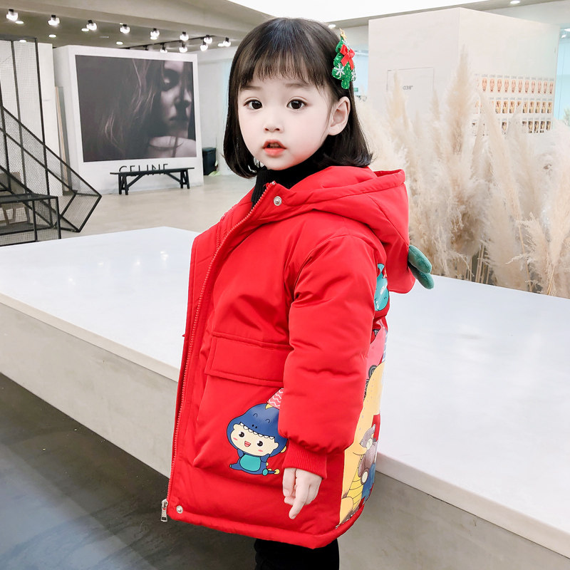 Girls' cotton clothes autumn and winter clothes 2022 new Korean version of the children's hairpin cotton hooded jacket baby mid-length cotton clothes foreign style