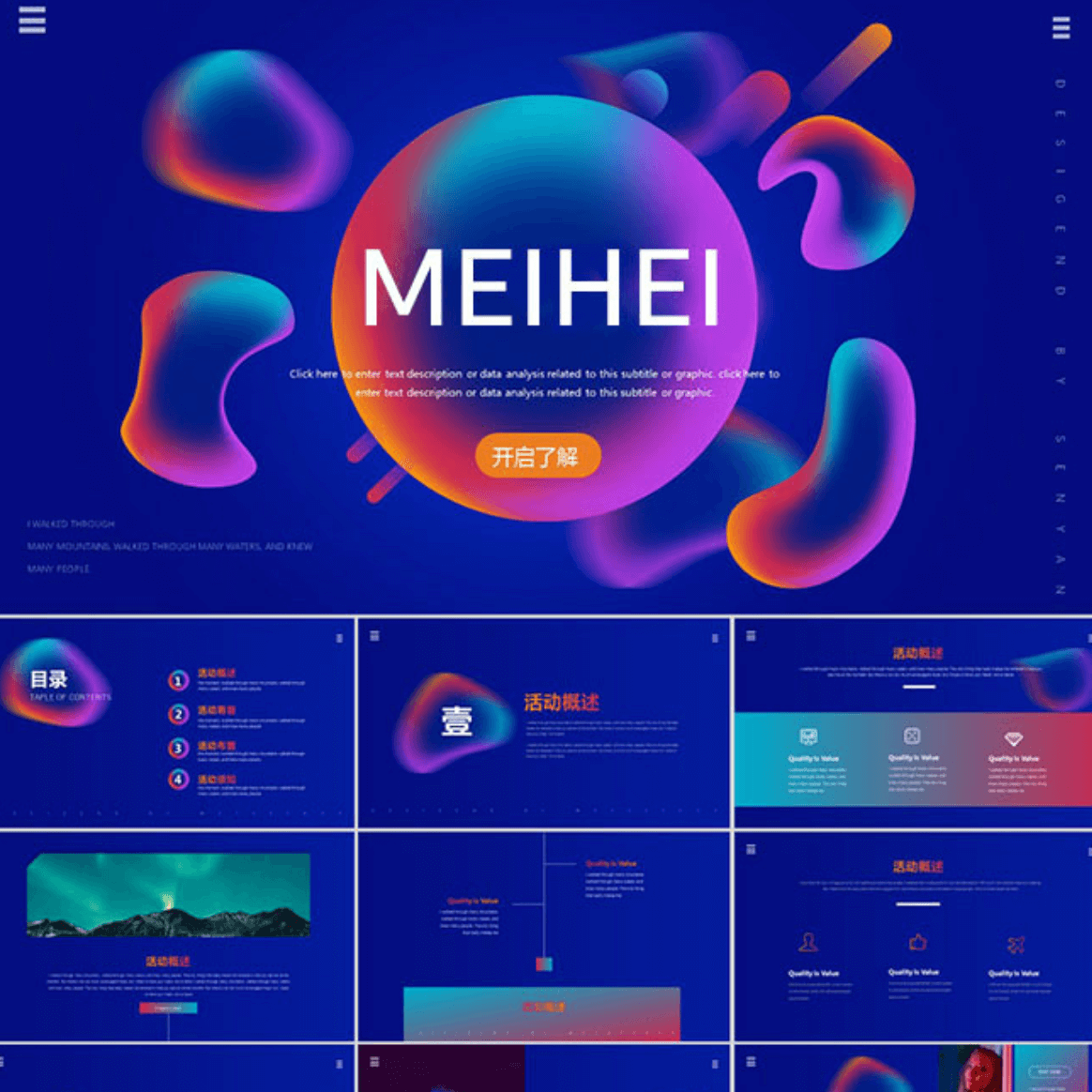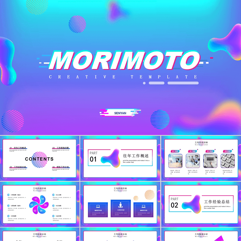 Creative ppt template art fashion colorful fluid material high-end business work report on science and technology
