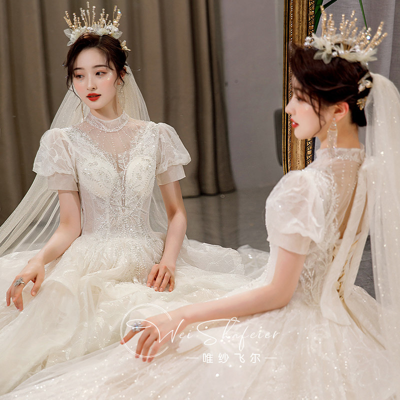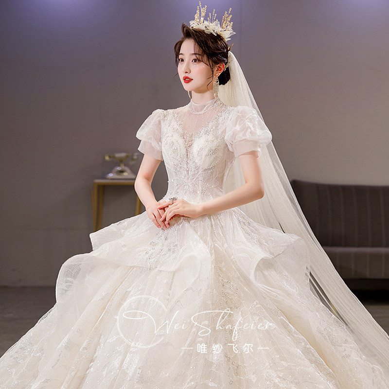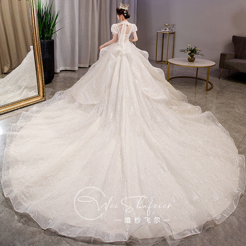 Wedding dress master dress 2023 new bride married drag and tail luxury super heavy industry super - heavy texture small man shade arm