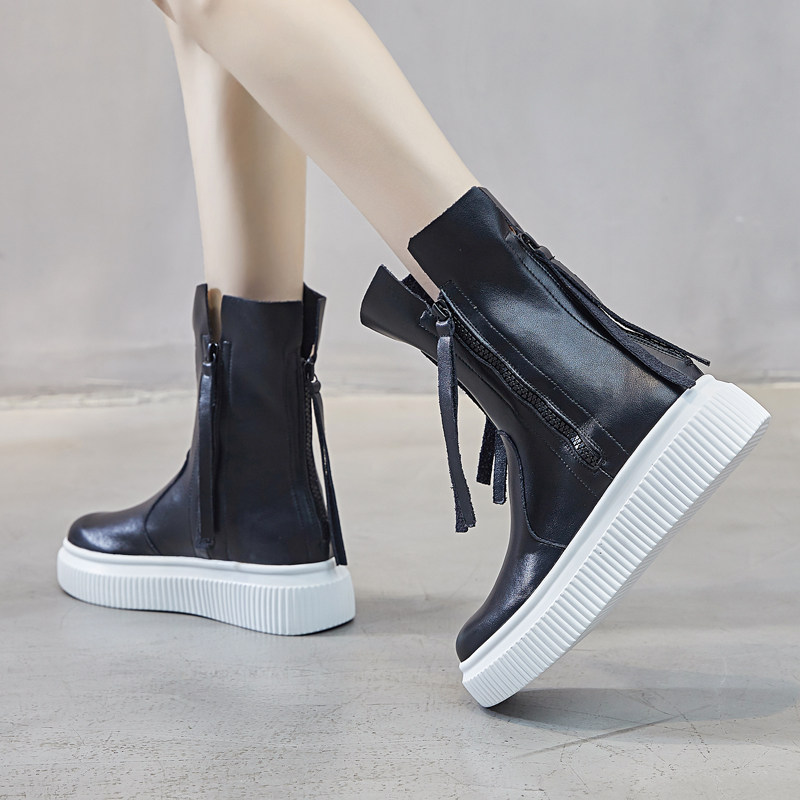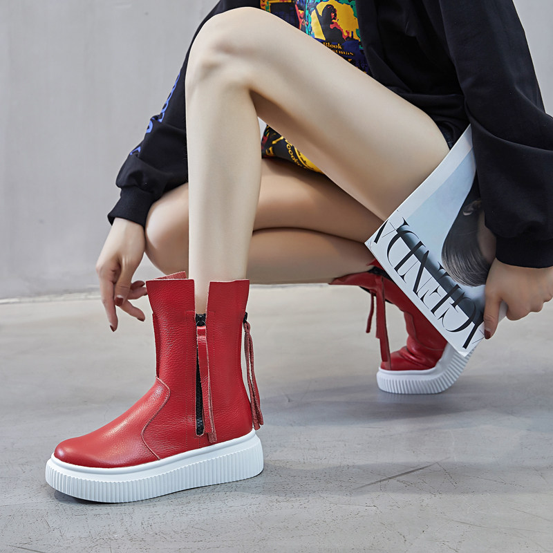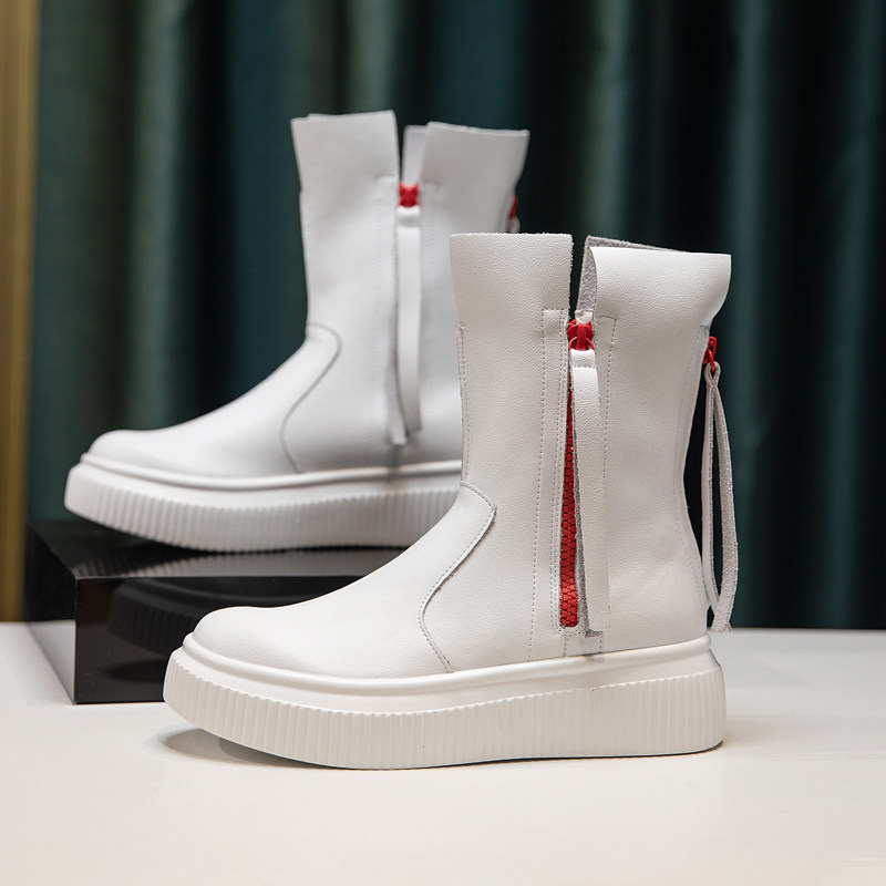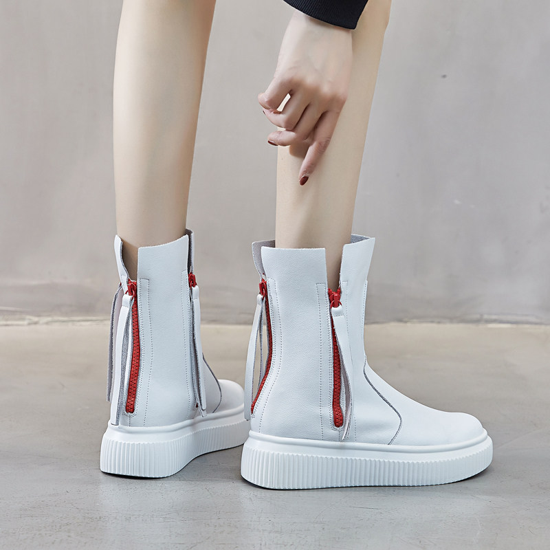White Martin boots women's spring and autumn single boots muffin thick bottom increased leather red fried street cool boots European station short boots