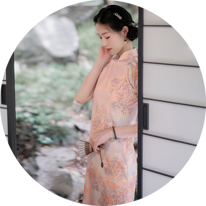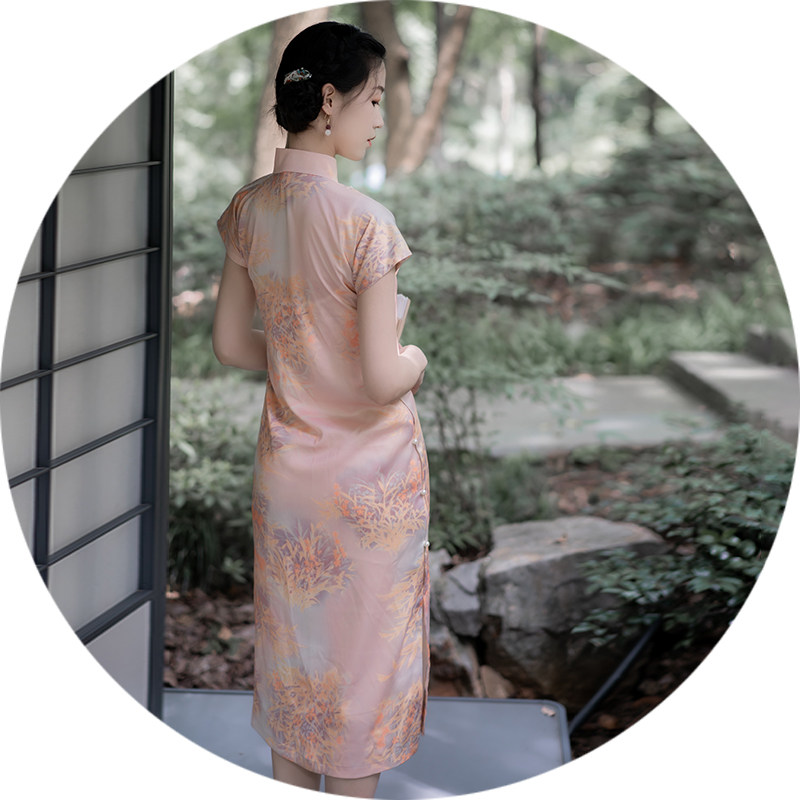 Xiaogongzi's Qianxia) Reancient Republic of China Wind Summer Young Temperament Short of Everyday Short Sleeve Qipao Full Opening