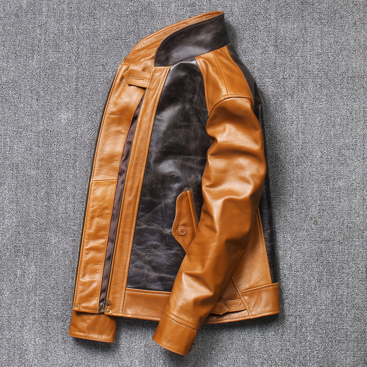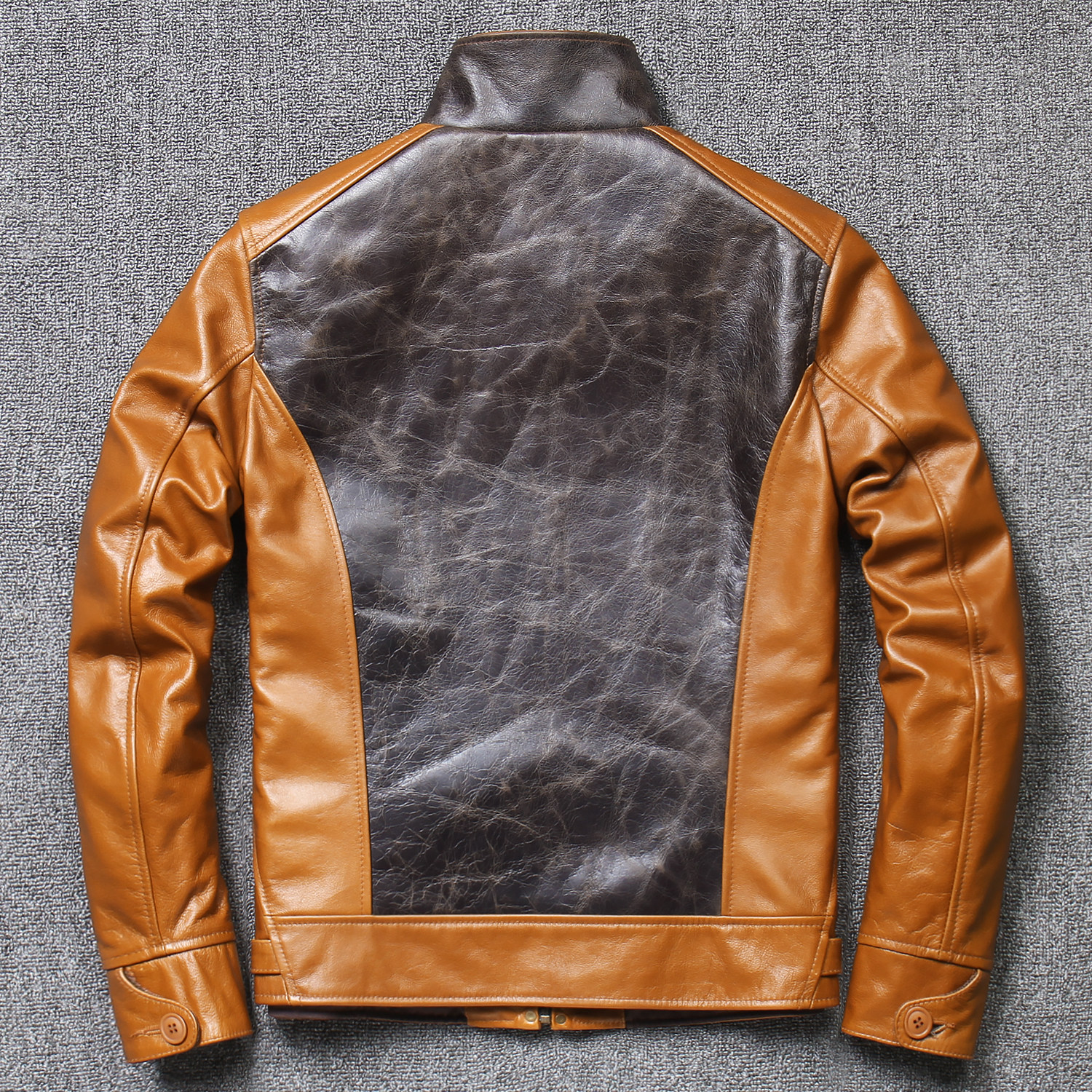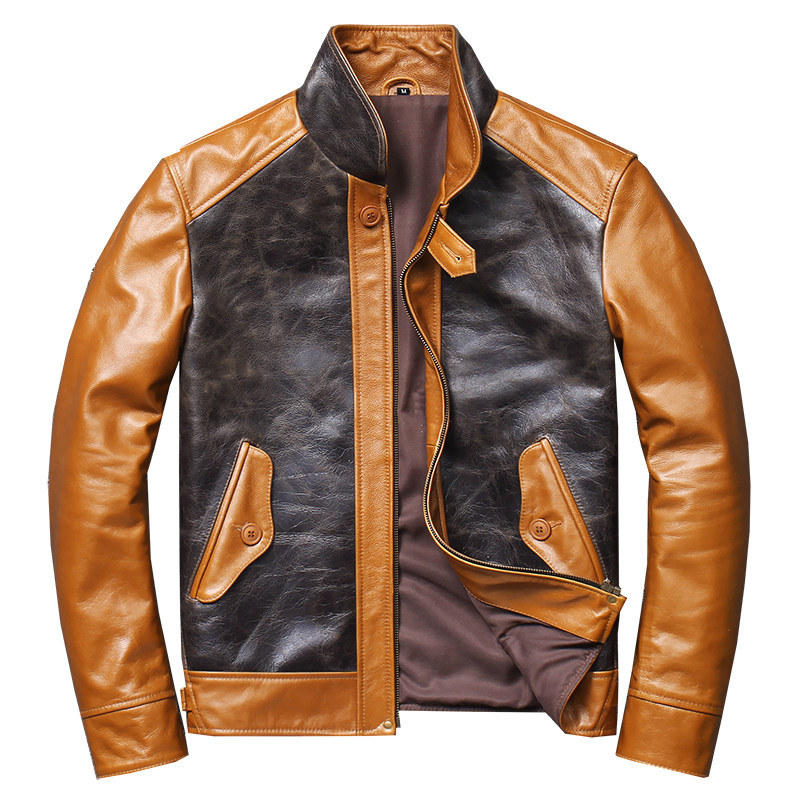 Wax-dyed head-stained coloured splicing leather jacket real fur coat for men's short fashion fix coat