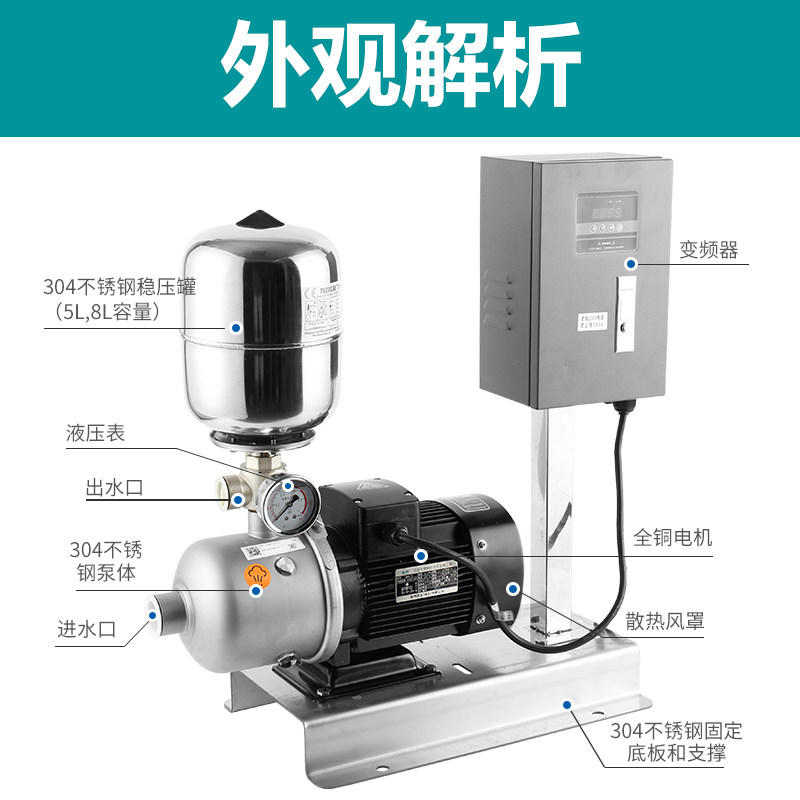 NT BW variable frequency constant pressure booster pump mute full 304 stainless steel multistage centrifugal 380V Commercial 220V hot water