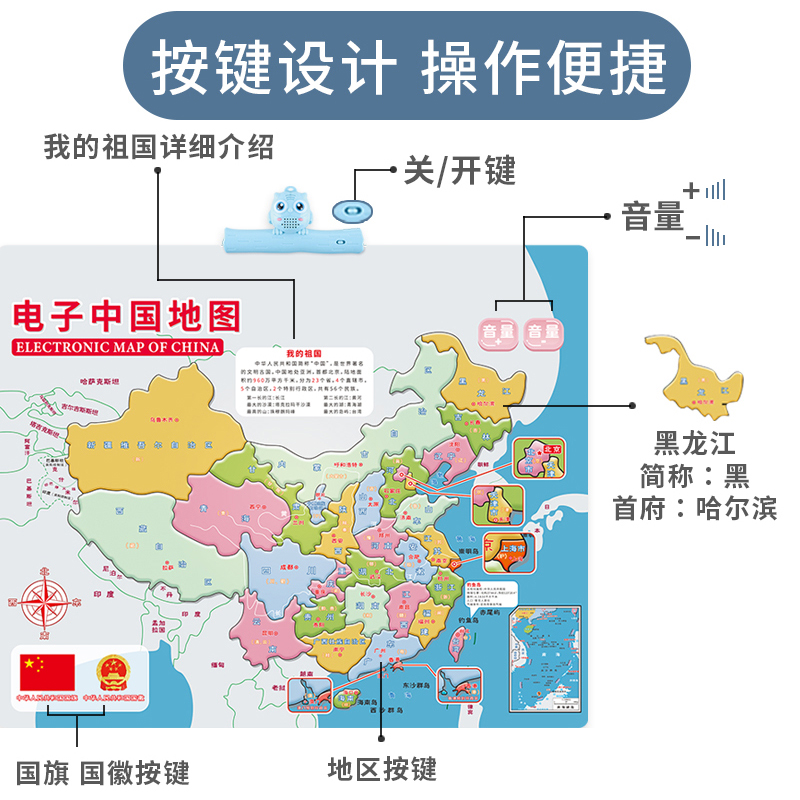 Chinese map children with sound wall charging points read sound viewviewcognitive geography historical wall plastic rechargeable gift