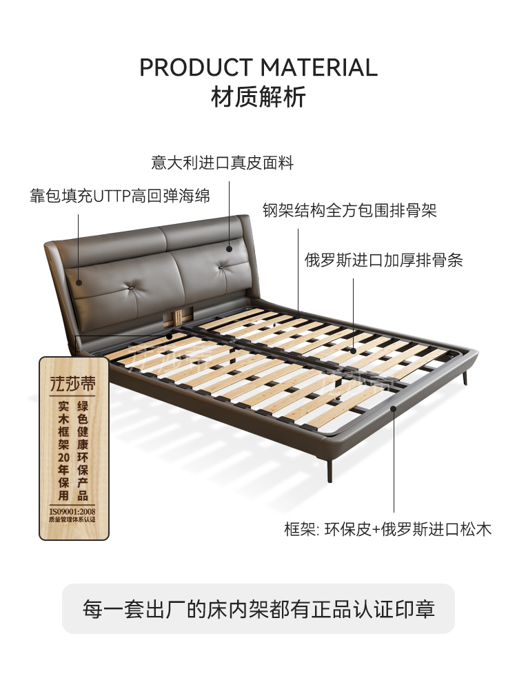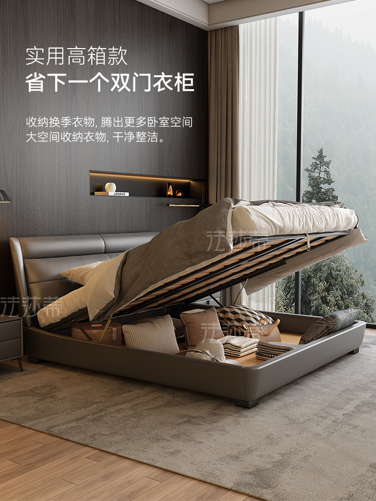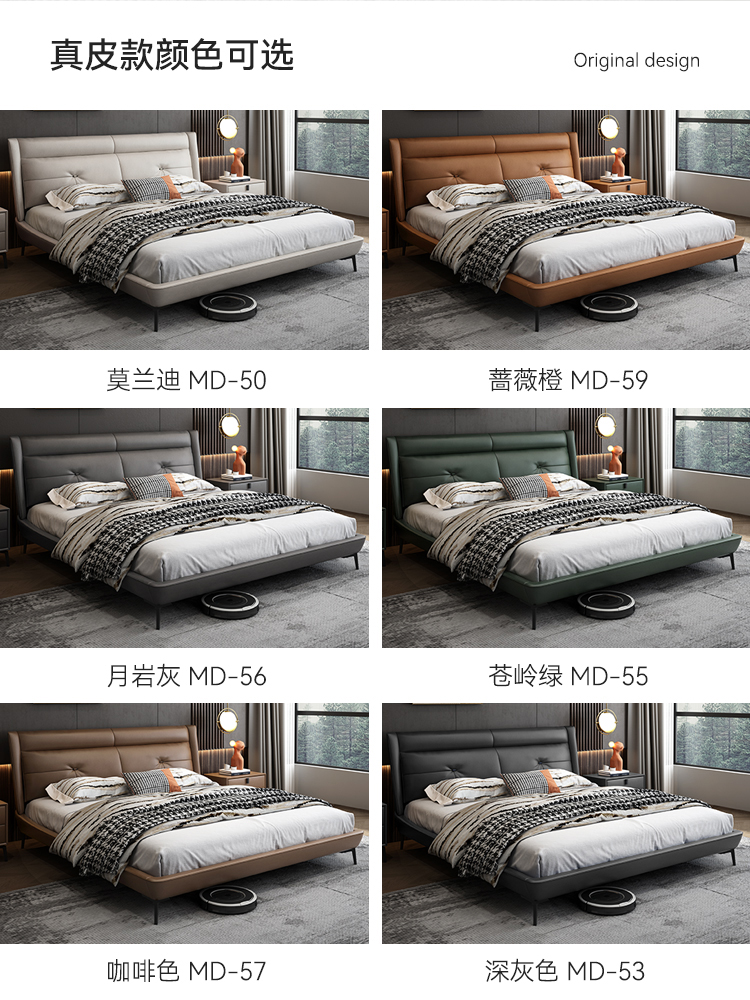 Italian style minimalist light luxury leather bed imported leather double bed master bedroom marriage bed 1 8 meters modern minimalist soft bed