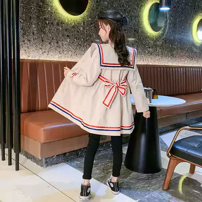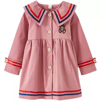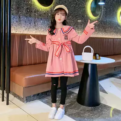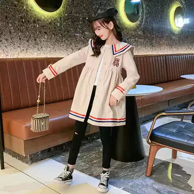 Children's dress girl 2021 autumn new long sleeve solid color navy style open shirt dress