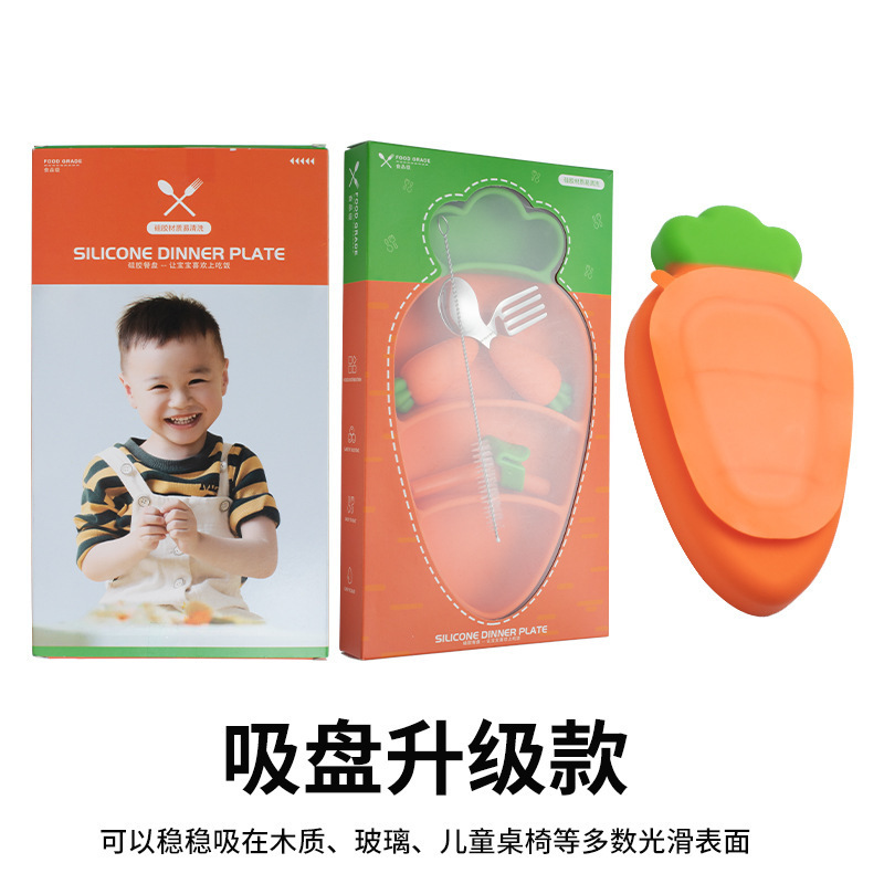 Carrot Dinner Plate-Single Carrot dinner with spoon Carrot Dinner Plate Straw Carrot dinner plate complete (dinner plate fork spoon straw) Delivered Straw Brush