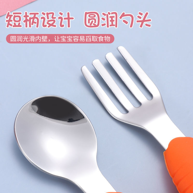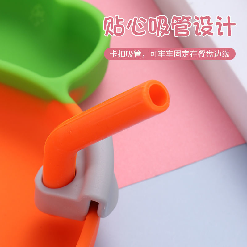 Baby cutlery Cutlery Silicone Tray DINNER WITH CUTE BABY LEARN TO EAT COMPLEMENTARY BOWL FORK SPOON STRAW SUIT KIT-Taobao