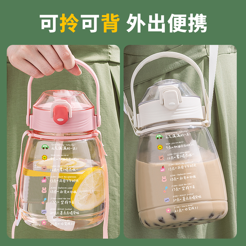 Pink 1300ml (straw strap drinking water target sticker) white 1300ml (straw strap drinking water target sticker) green 1300ml (straw strap