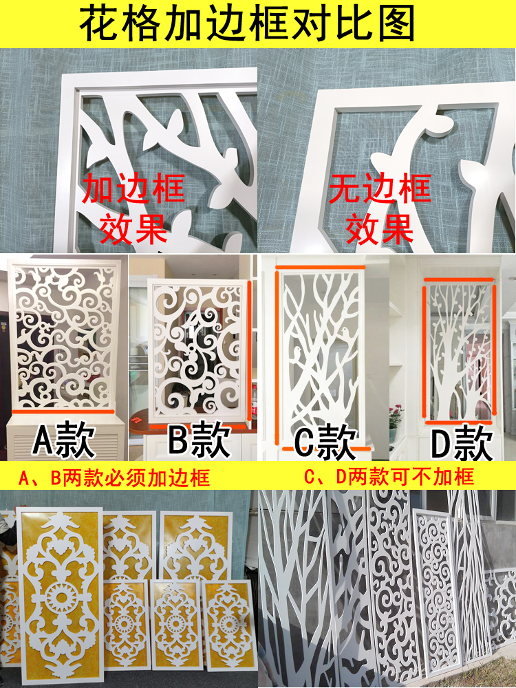 Hollow carved board partition aisle PVC lattice ceiling wood plastic board porch background wall living room through flower board screen