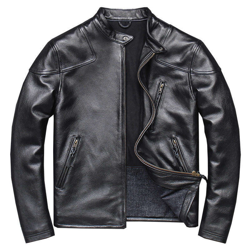 2022 Youth Trend Venom New Genuine Leather Leather Clothing Male collar Short-head Bull Leather Jacket Locomotive Leather Jacket