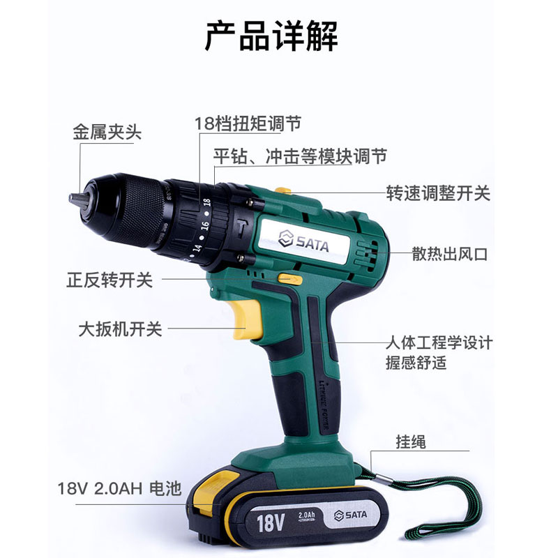 Shida Electric Electric Drill 18V Lithium Battery High-power Charger Multifunction Shock Drill Home electric transfer 05808