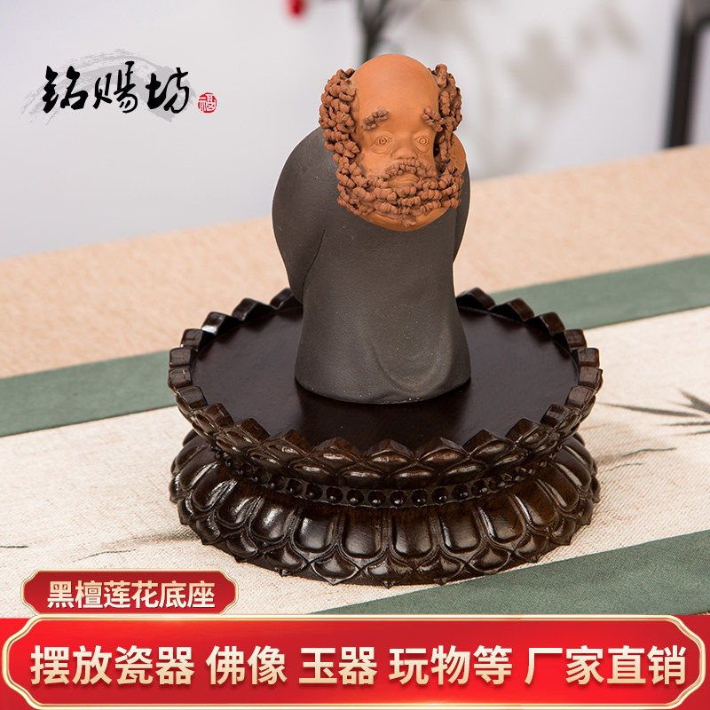 Black sandalwood lotus Buddha statue round base solid wood Guanyin Bodhisattva God of Wealth for Buddha retro household incense burner decoration bracket