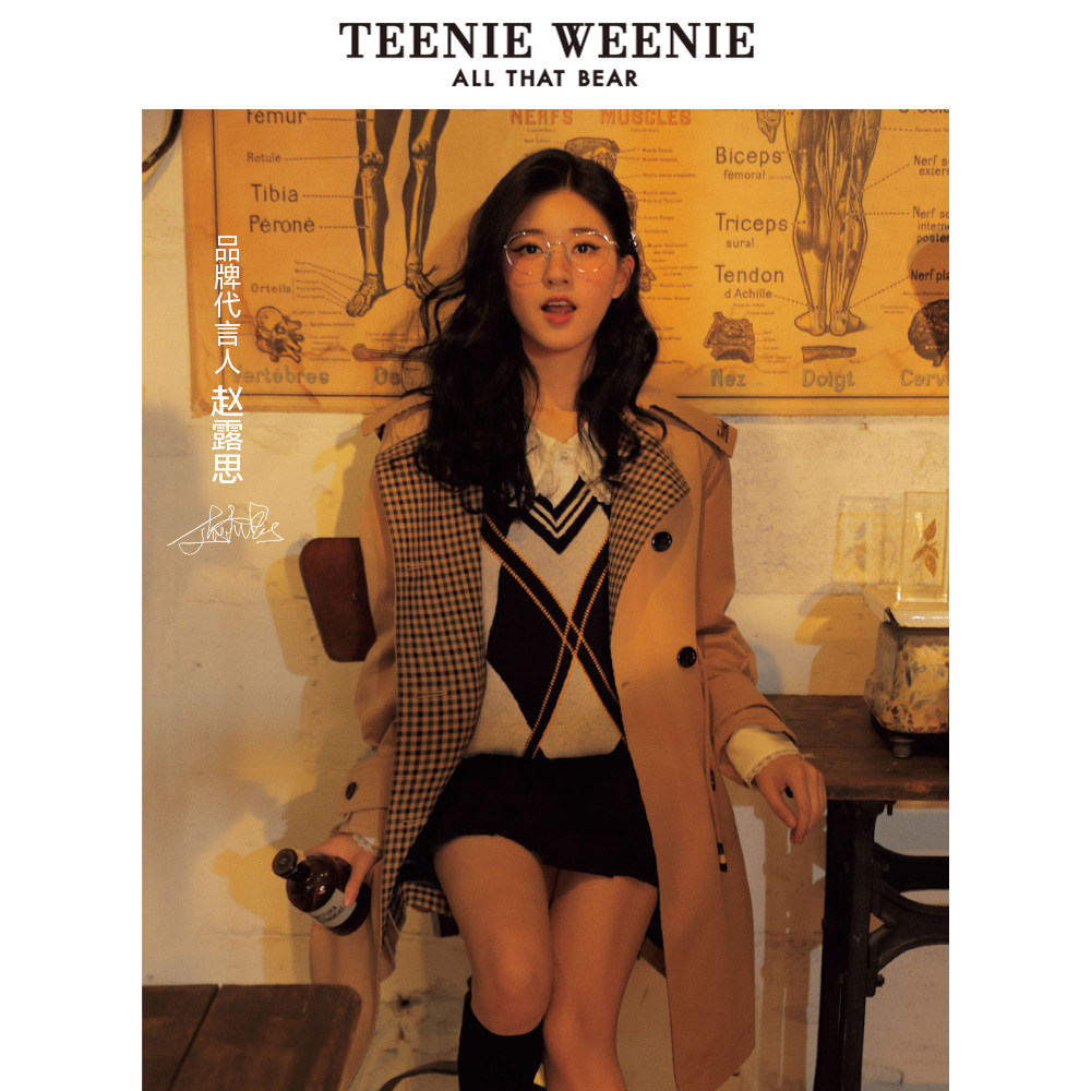 (Zhao Ruth's same paragraph) TeenieWeenie XiaoXiong with a long version of the wind coat jacket female loose Han version splicing