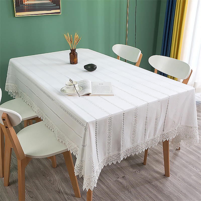 Table Blelace embroidered fabric Nordic ins wind hollowed out white rectangular minimalist modern round table table cloth-Taobao