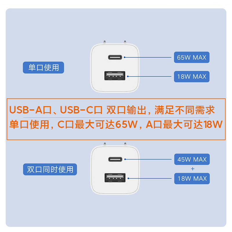 Xiaomi GaN Charger 65W Mobile Phone Nitriding Gallium Charging Head Notebook Accessories USB-C A Fast Charge 1A1C