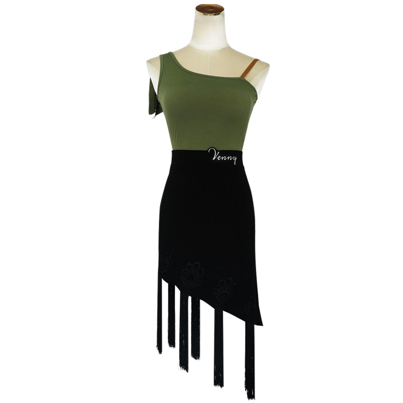 venny Vienie Latin dance practice Girl Children New Slanted Shoulder Harnesses Two-style Flow Su Dancing Skirt Mesh Red Suit