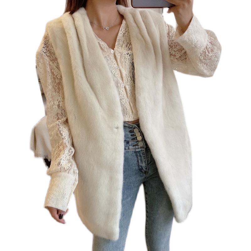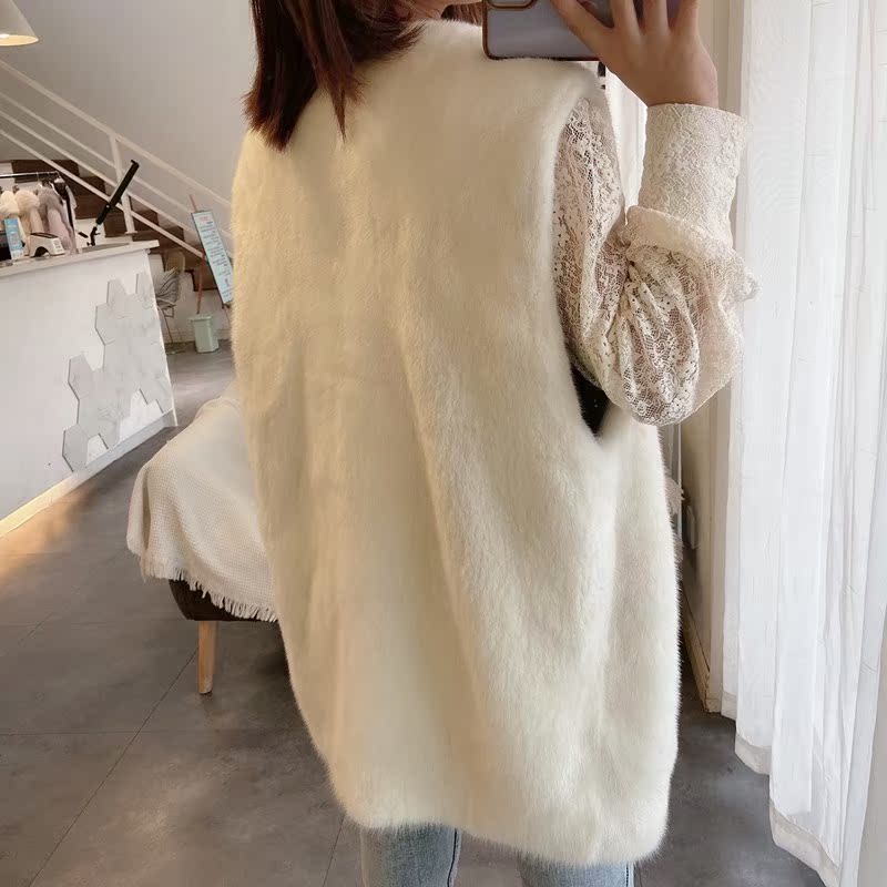 2021 autumn and winter new mink fur coat women's whole mink vest mid-length version loose imported mink fur vest casual