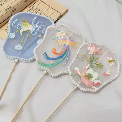 Embroidery shaped fan double-sided classical palace fan tassel fan children's fan bananas Hanfu photo props dance