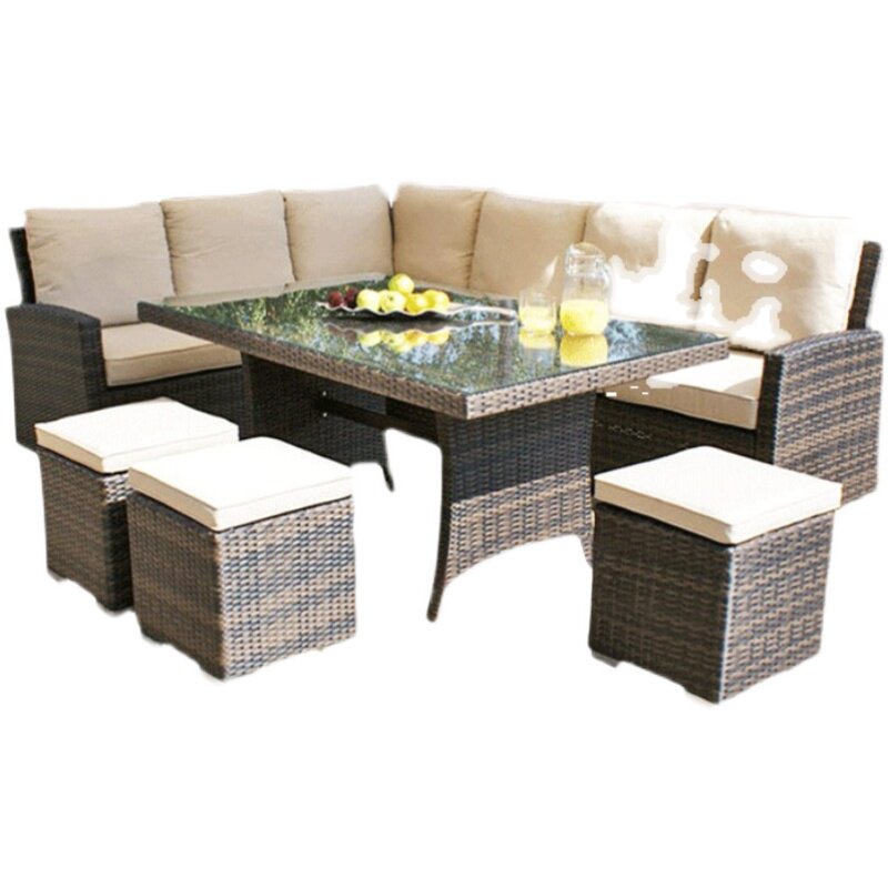 Outdoor sofa garden balcony sunscreen waterproof rattan outdoor furniture table and chair set leisure corner sofa combination