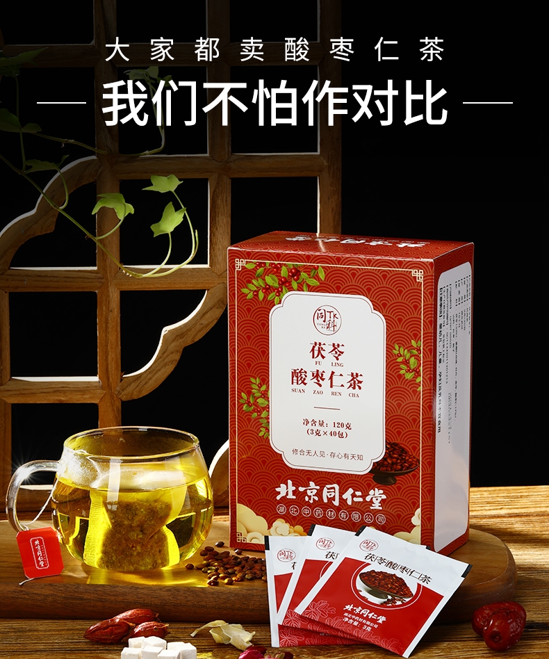Beijing Tongrentang Poria sour jujube seed tea lily rose gardenia red dates soothe the nerves and help sleep health tea 3g*40 packs