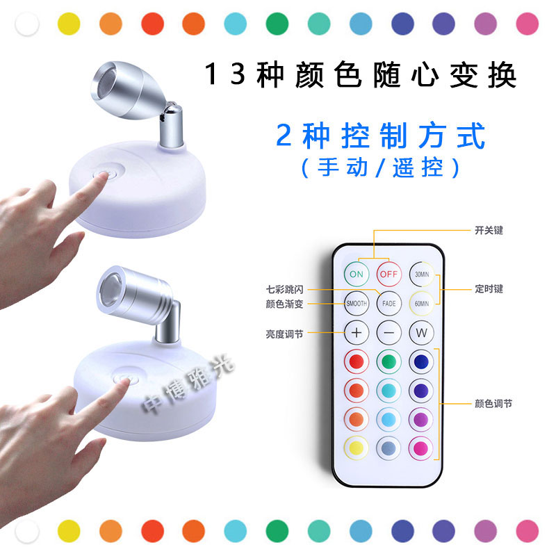 led small spotlight dry battery wireless remote control dimming exhibition counter jewelry move free of punch 13 color rgb small night light