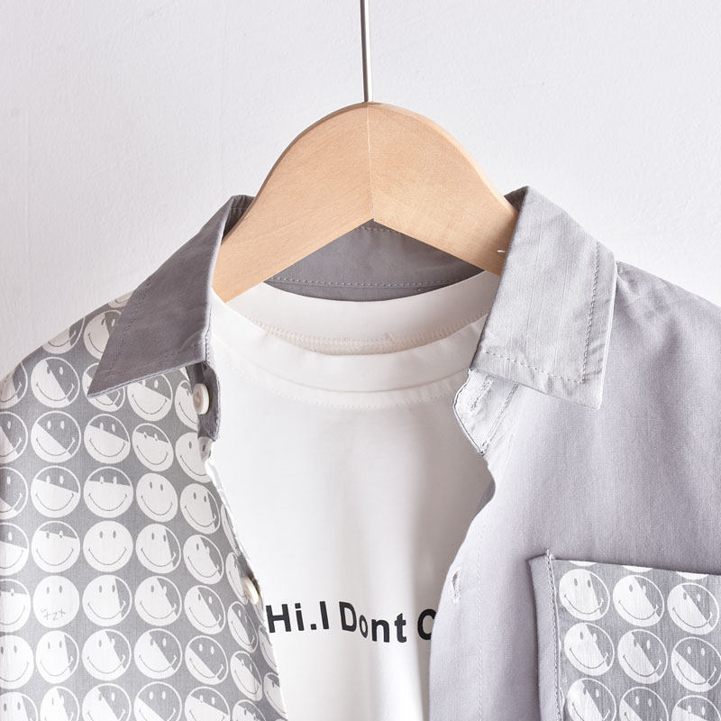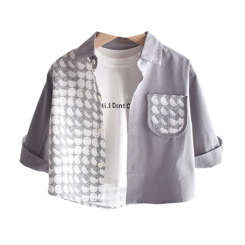 Boy shirt fall new children's shirt Han version Spelling Baby Autumn Clothing Blouse Jacket Korean Version of pure cotton