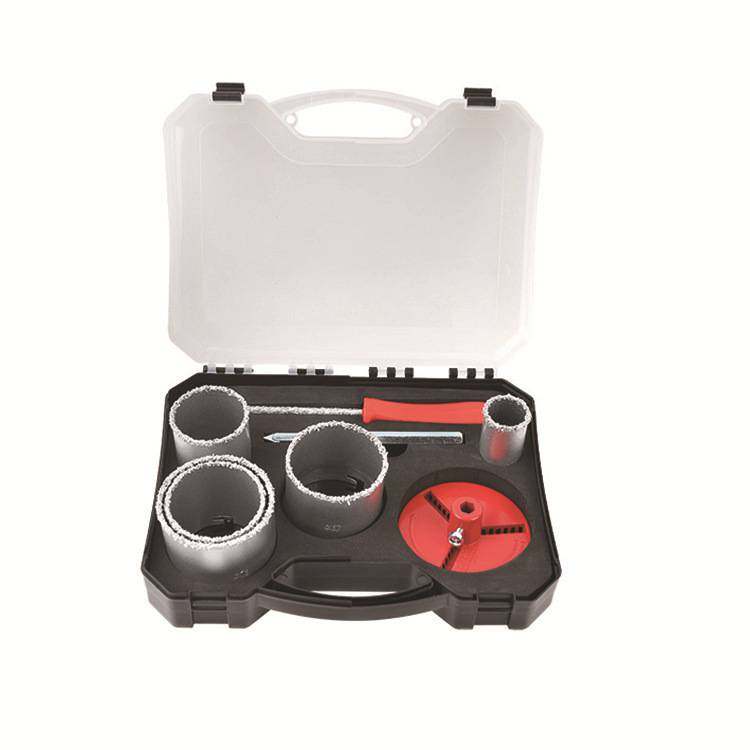 Manufacturer 8 pieces of plastic case with tungsten carbide Cemented Carbide Crushed Grain Pore Saw YG8 Tile Driller BORING MACHINE