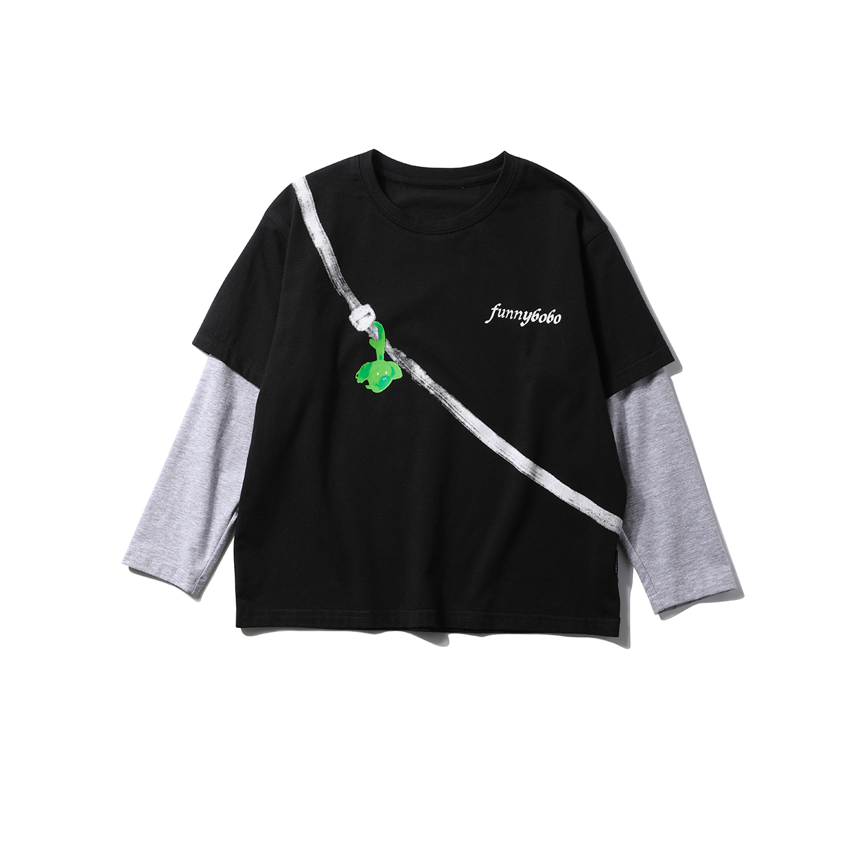 Bobo Pig Boy Clothing Boy Spring Autumn Fake two T-shirts CUHK Tong Leisure Long sleeves Child loose Fried Street Clothes Tide