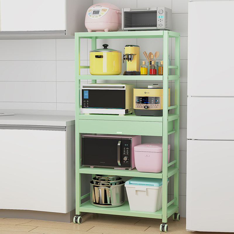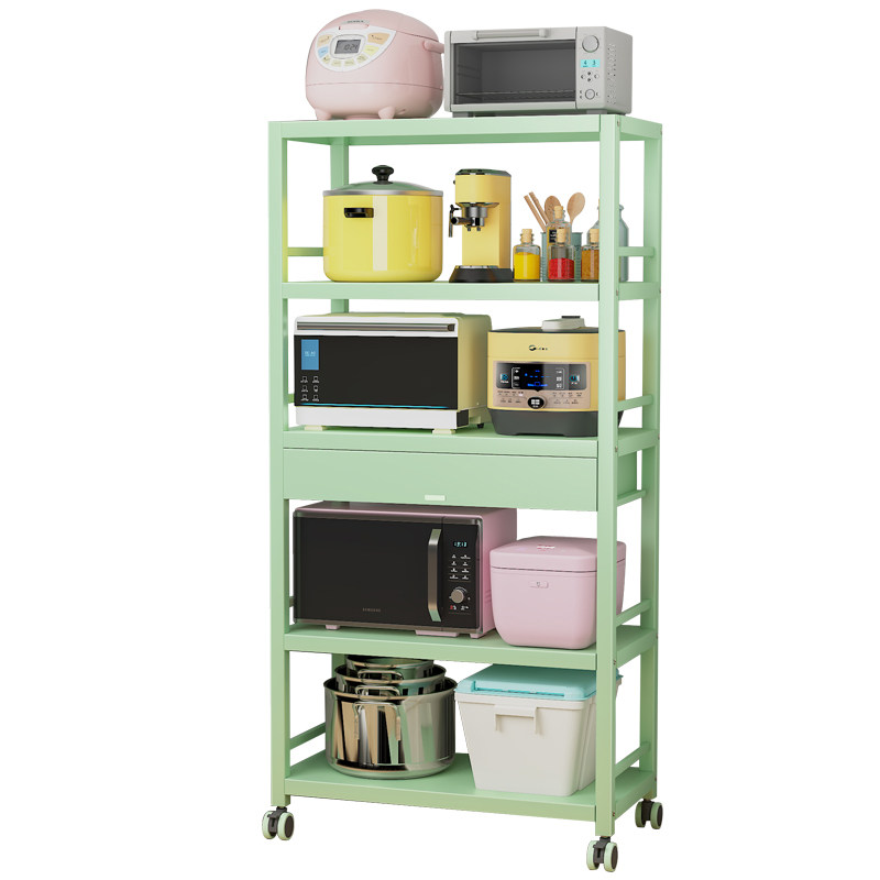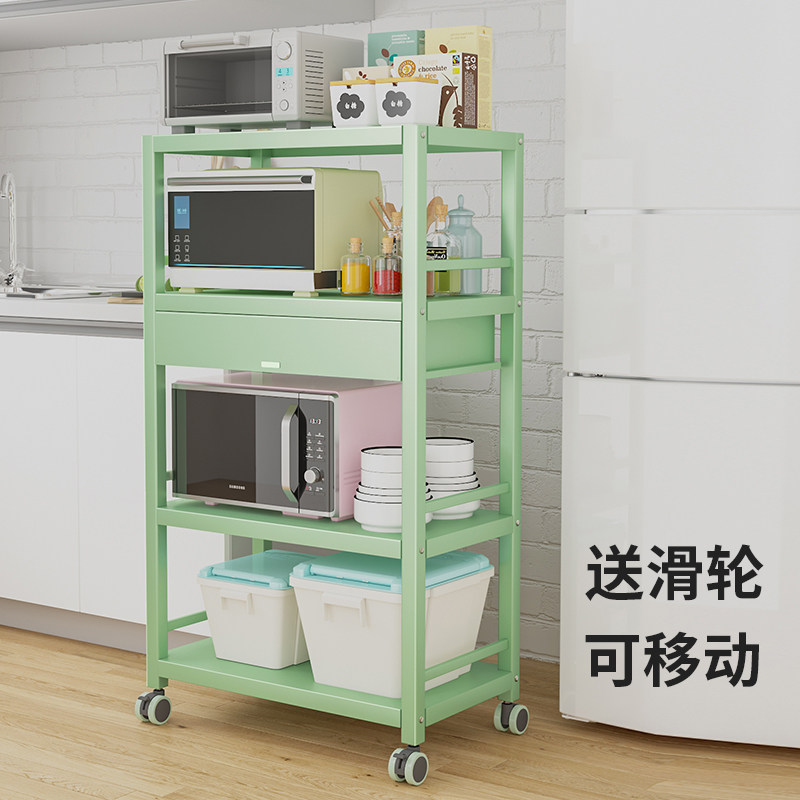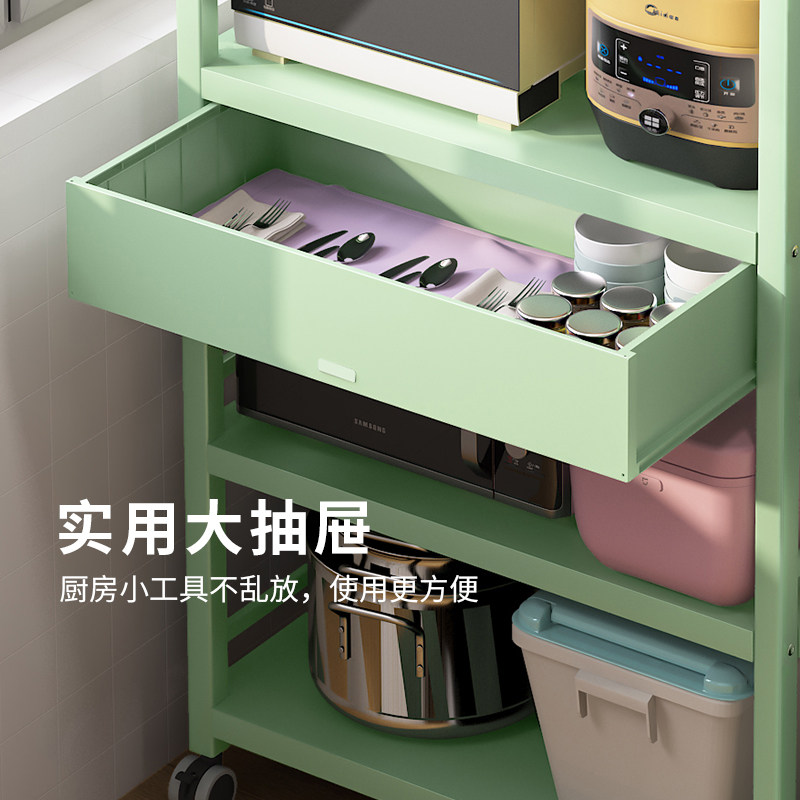 Multi-functional pan frame with drawer kitchen container cabinet with floor shelf multi-layer microwave oven rack