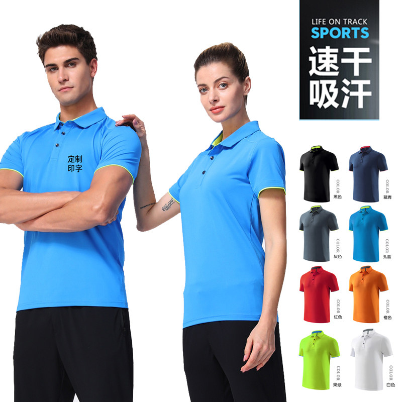 Customized sports polo shirt men speed-over-collar fitness coach suit work clothes T-shirt printed logo short sleeves