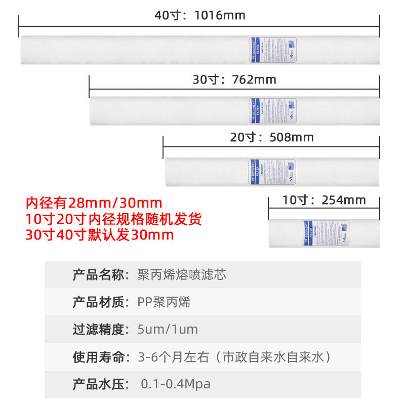 40 inch PP cotton (one case of 25) 40 inch PP cotton 440g outer diameter 62mm (one case of 25) 40 inch PP cotton 480g outer diameter 63mm (one case of 25)
