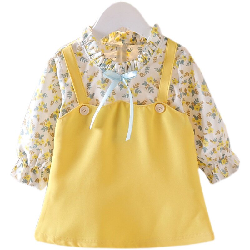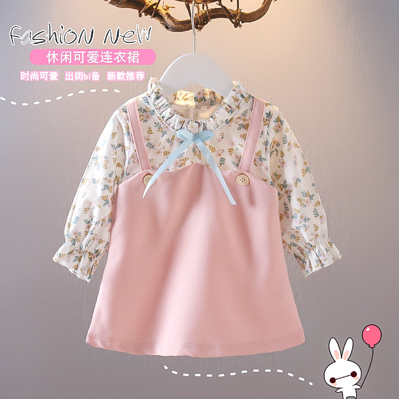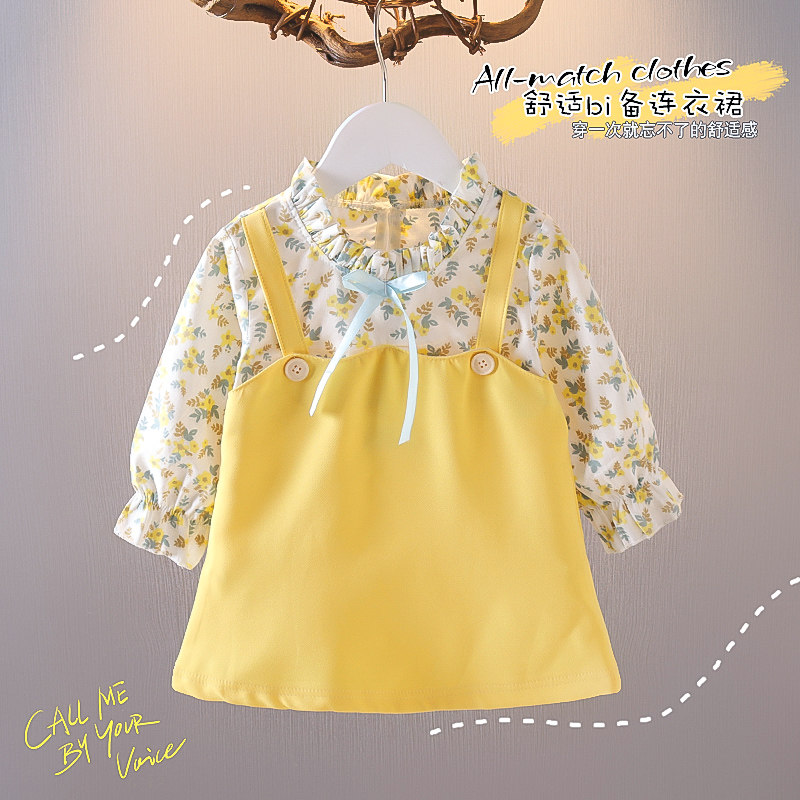Girl Crushed Flowers Foreign Dress Spring Autumn Ocean Princess 2021 Autumn Dress New Kids Academy Wind Net Red Dress Exploits