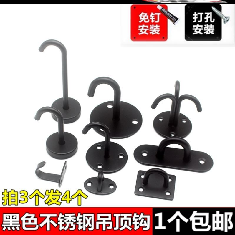 Black liquid-free nail decorative hook large punched stainless steel hook fan hook chandelier hanging hook sandbag bag