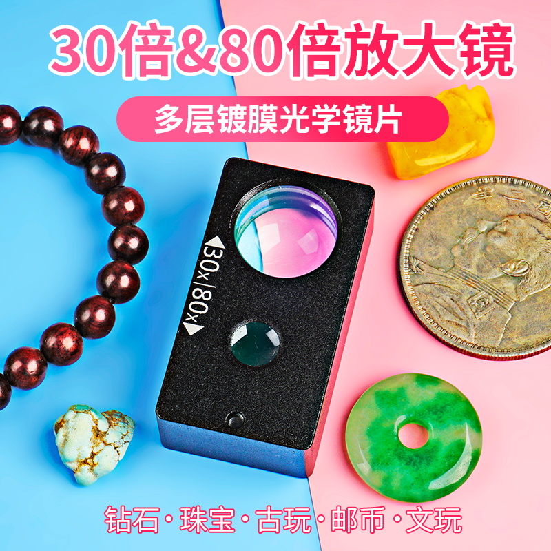 Baishitong Jewelry Magnifier 30 Times HD Portable Handheld 80 Times High Times Old Man Ancient Chinese Play Diamond Jade Identification Silver Dollar Calligraphy and Painting Stamps Geological Research 1000 Maintenance Table