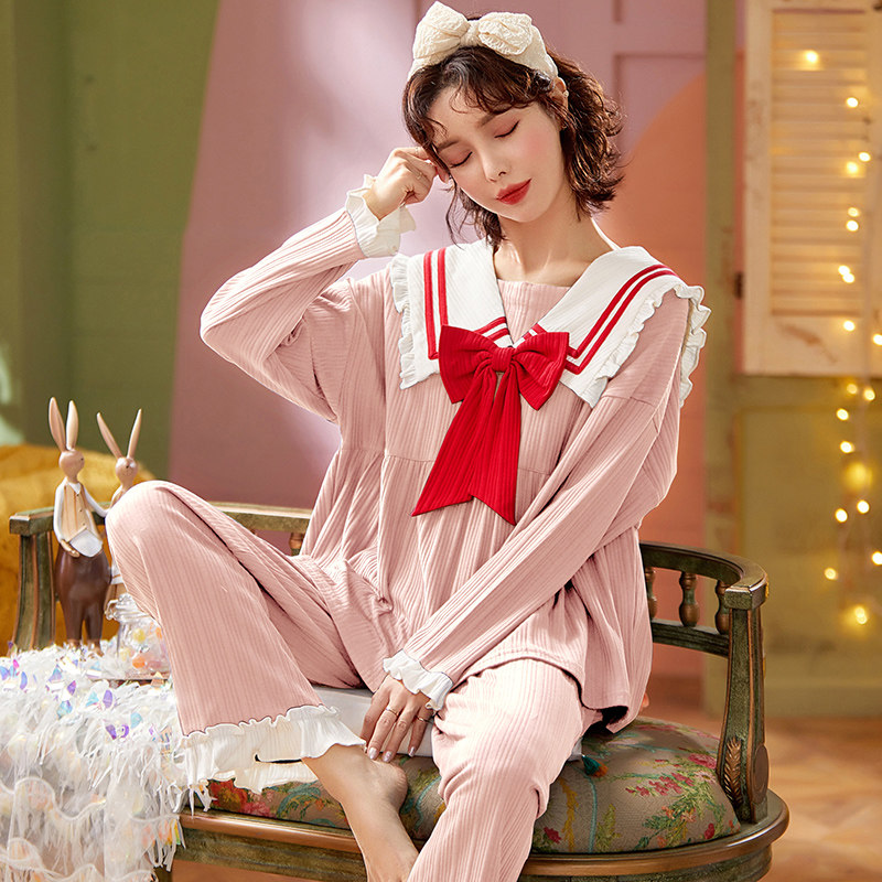 Ladies pajamas spring and autumn 2022 new cotton silk long-sleeved sweet princess style homewear suit autumn and winter pure cotton
