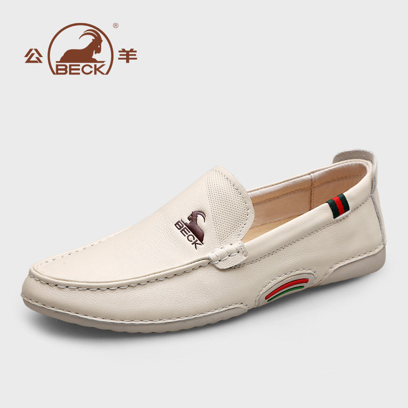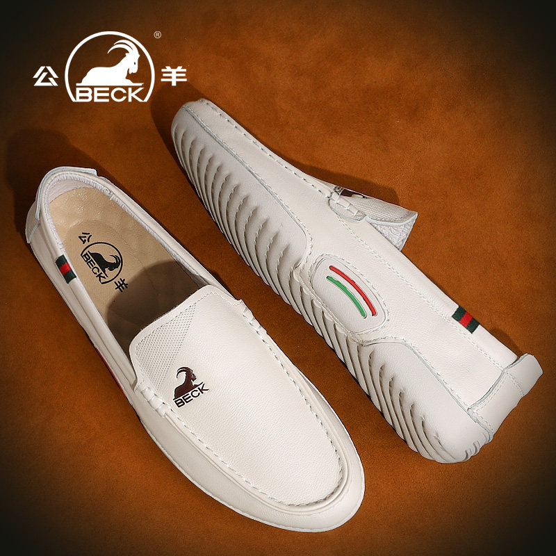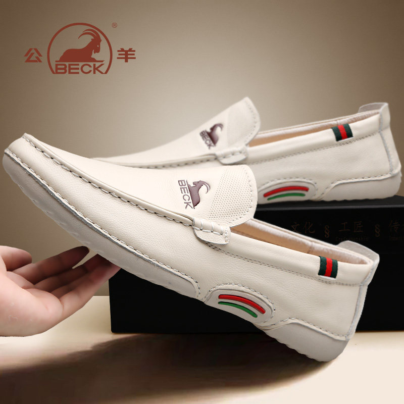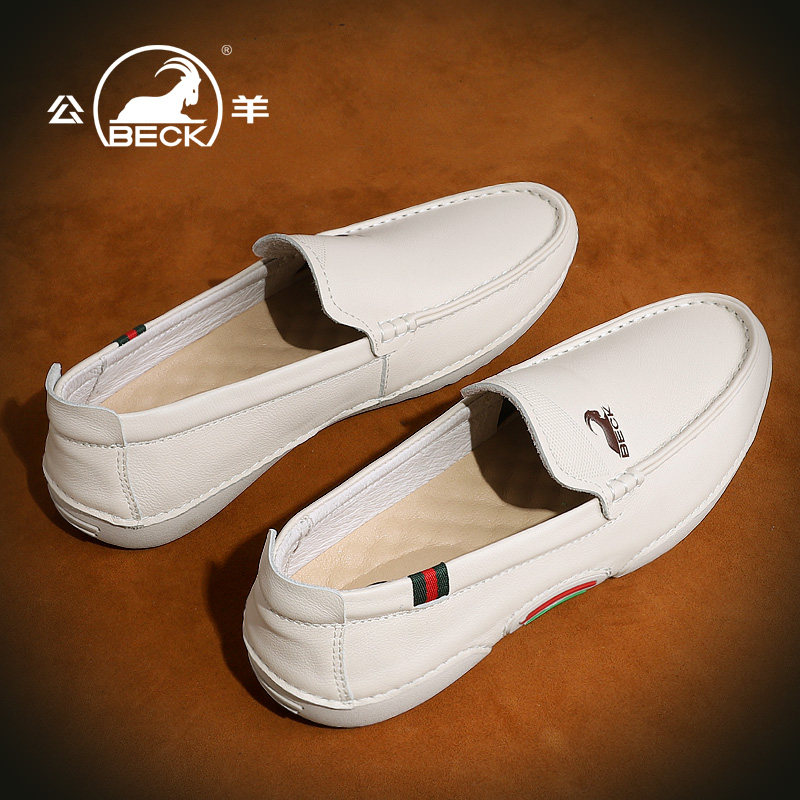Ram leather shoes men's leather white shoes soft bottom British men's casual shoes autumn slip-on lazy men's shoes Peas shoes