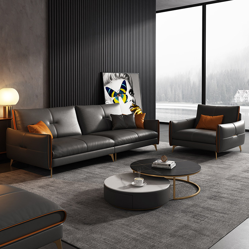 Italian light luxury office sofa leather simple modern business reception office sofa coffee table combination three people