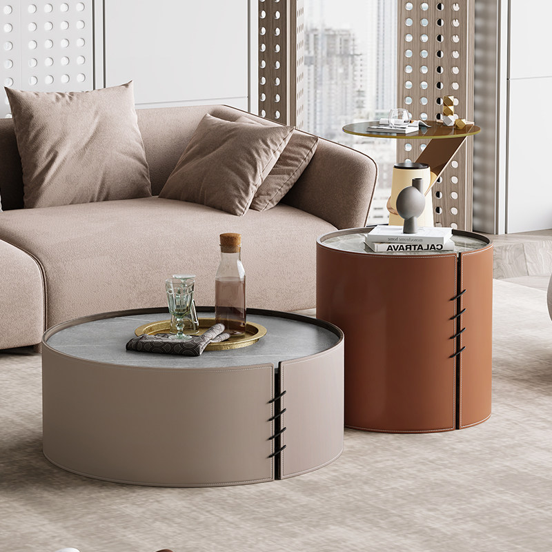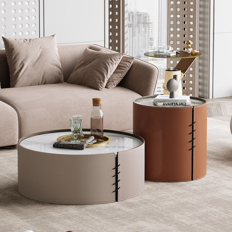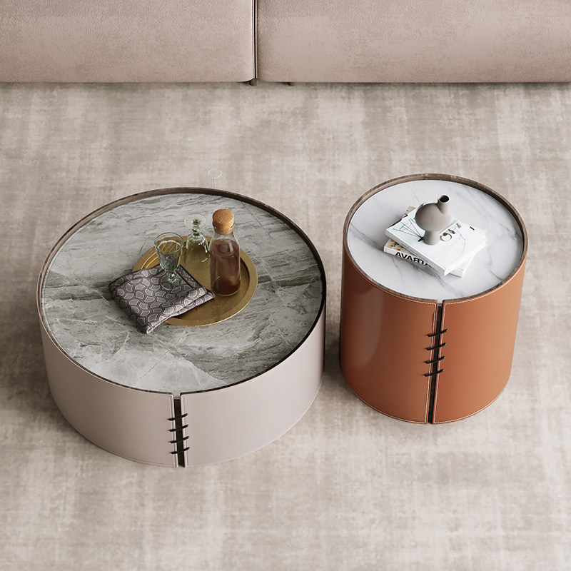 Nordic Round Rock Plate Tea Table Composition Living Room Small Family Style Home Light Lavish Saddle Leather Modern Minima Small Tea Table Table