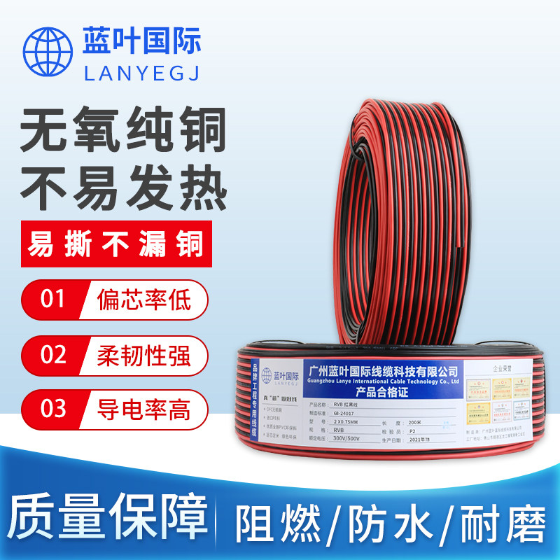 National standard pure copper core red and black wire 2 core wire parallel wire power cord led horn electronic wire double color wire soft