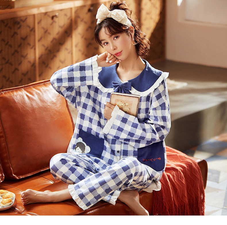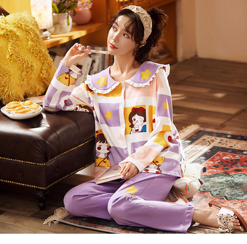 fy fangyi sleepwear lady spring autumn 2021 new pure cotton long sleeve elastic small bear summer home suit suit