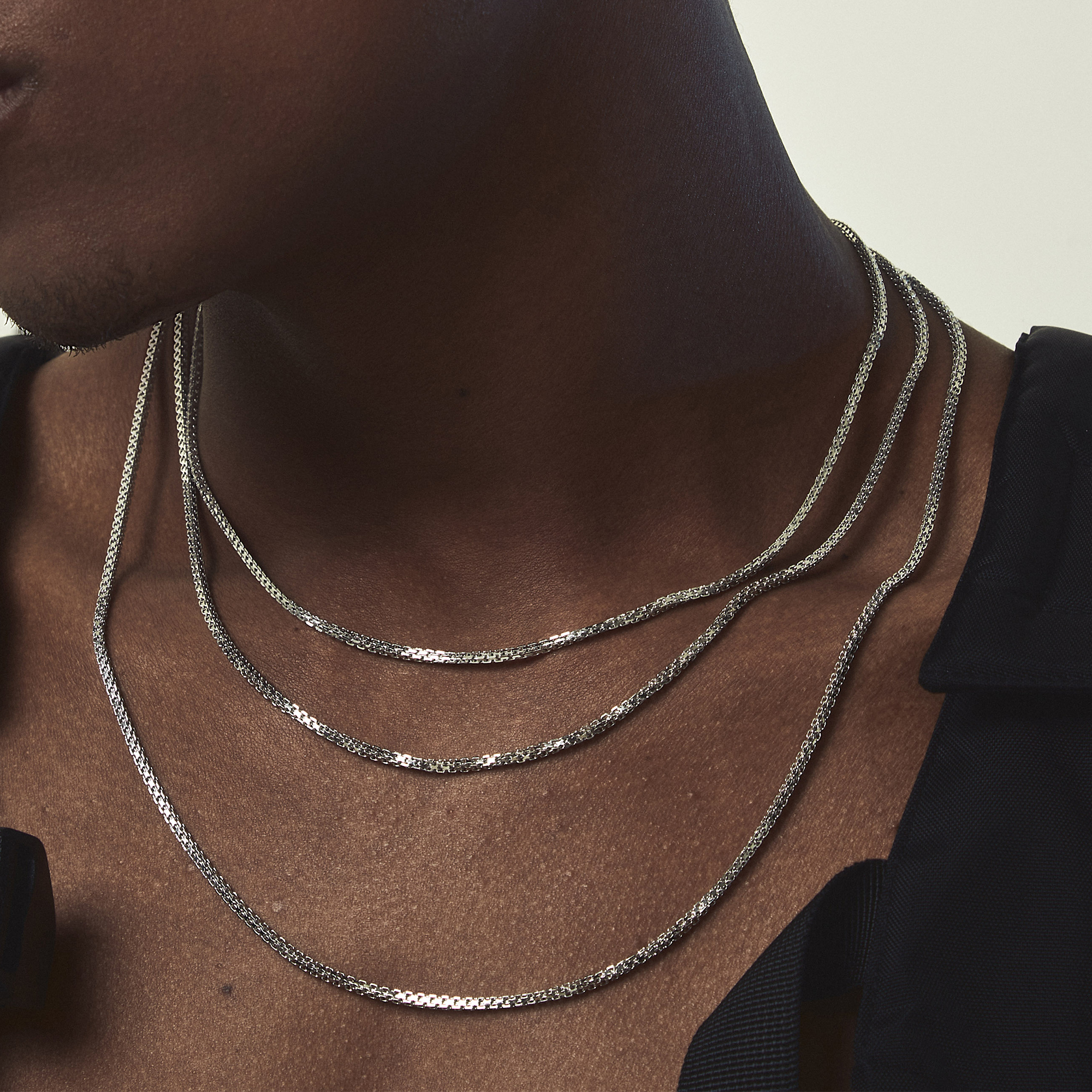 2mm pure silver S925 square solid chain 45cm2mm pure silver S925 square solid chain 50cm2mm pure silver S925 square solid chain 60cm
