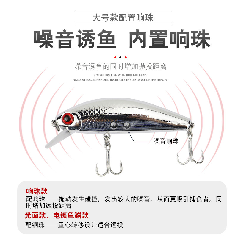 Mirror silver slow-sinking millet Nolua bait set freshwater sea fishing pass kill swallow mackerel warped bass tilapia bait