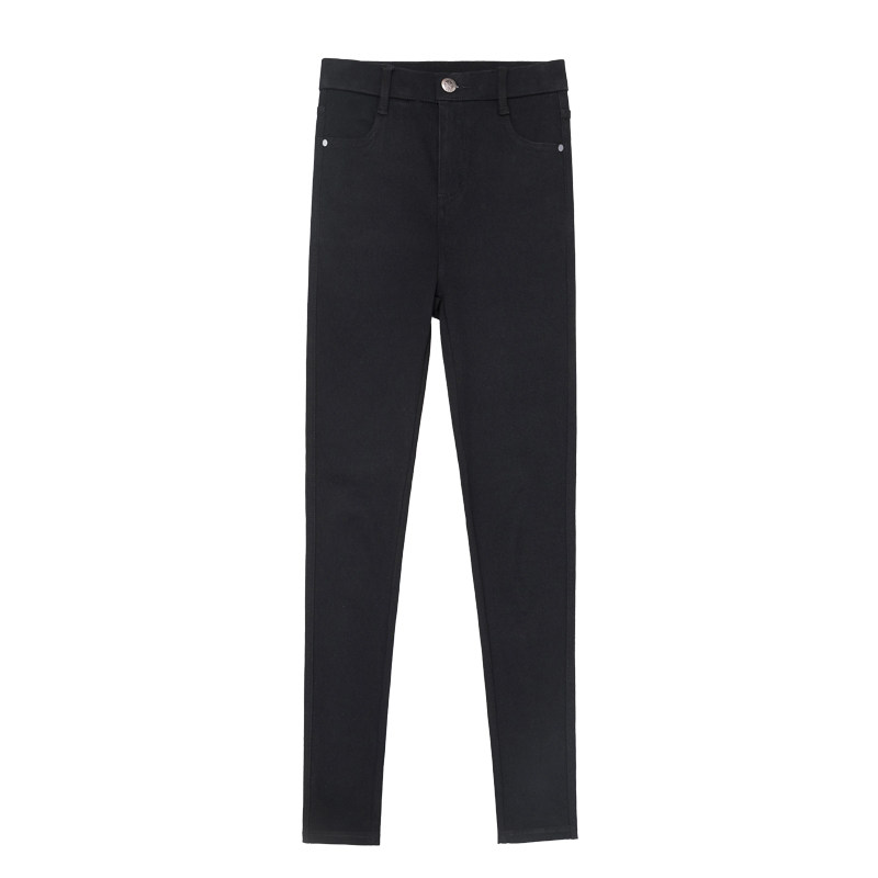 Black inner lap pants woman outside wearing autumn and winter 2021 new high waist elastic pencil spring autumn plus suede pants small black pants