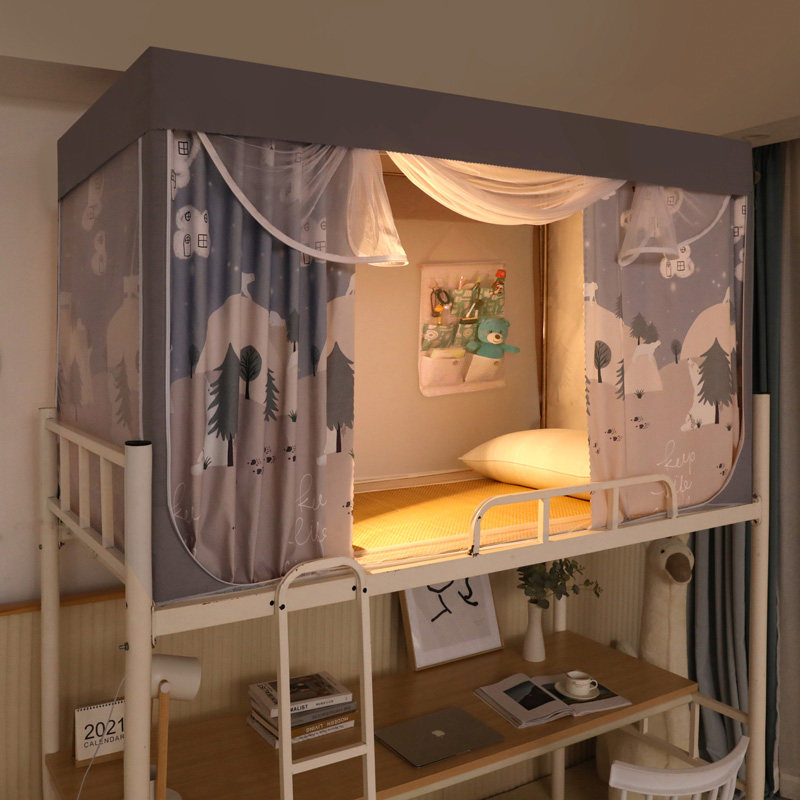 Pull Necklace Three-door Bed Curtain Shading Mosquito Net Student Dorm Room Bunk Bed for Summer Guys 190x90 Lower berth 80x190